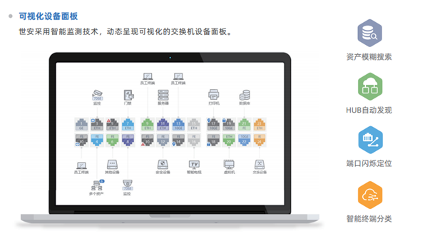 SA-NAC能夠識別網(wǎng)絡中交換機廠商、型號,并實現(xiàn)交換機面板視圖管理、交換機端口列表管理,直觀的展示交換機工作狀態(tài);并能夠?qū)崿F(xiàn)交換機CPU、內(nèi)存實時監(jiān)視、端口流量實時統(tǒng)計,并支持SNMP模板,節(jié)省手動配置交換機時間;支持端口安全功能,可設置端口為多MAC、隔離端口或可信端口等,并能查看該端口下接入終端情況。